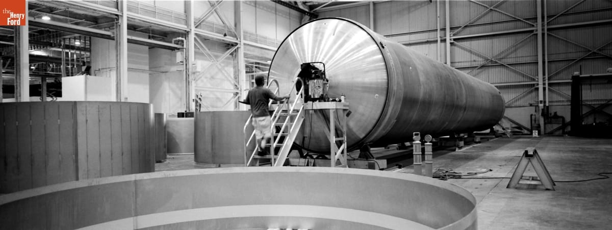 Elon Musk is the co-founder of PayPal and CEO of Tesla Motors and SpaceX. In 2008, staff from The Henry Ford journeyed to the California headquarters of SpaceX to interview the visionary entrepreneur. This image was one of many taken during the interview process documenting the employees, workspaces, and the factory where advanced rocket engines and spacecraft are made.