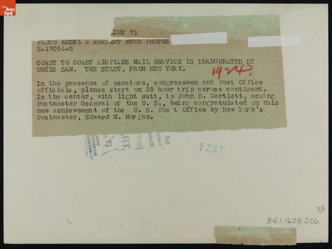 Inauguration of Coast to Coast Air Mail Service by the U.S. Post Office Department, New York, July 1, 1924