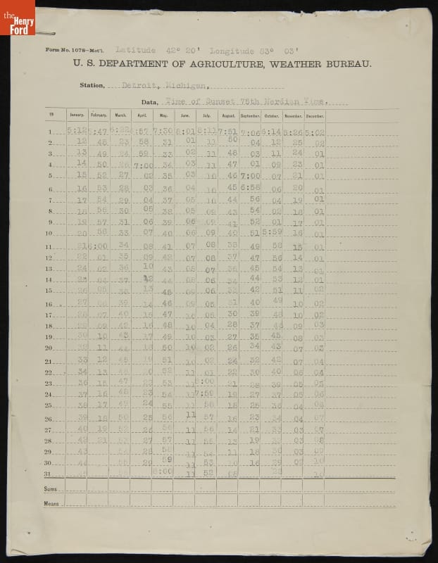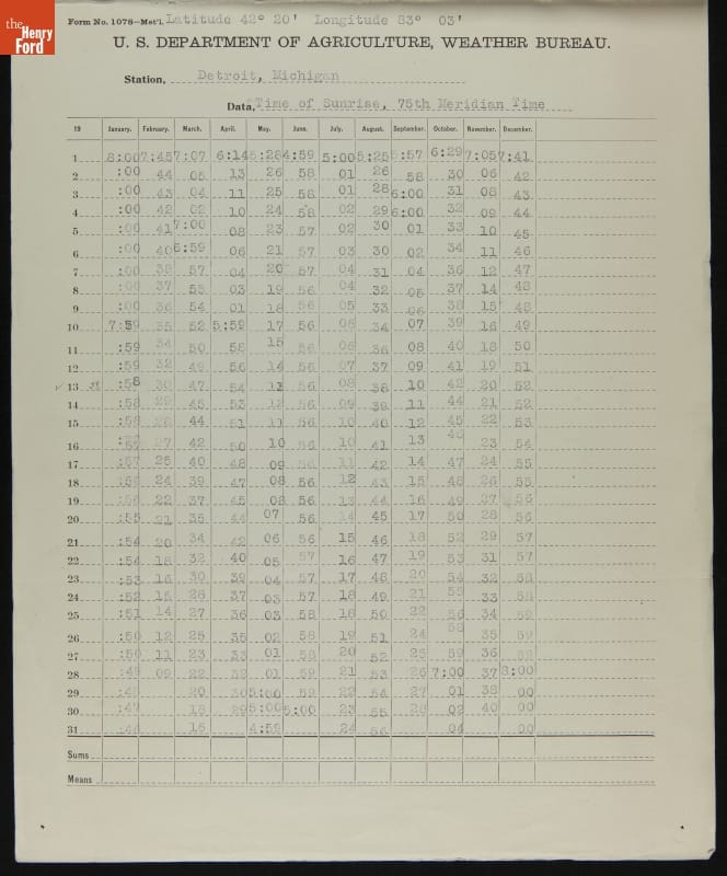 U.S. Weather Bureau Sunrise and Sunset Timetables for Detroit, Michigan, 1926-1927