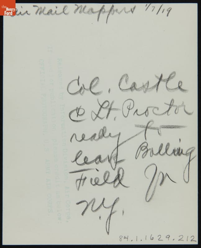 Air Mail Mappers 1/7/19 / Col. Castle / Lt. Proctor / ready to leave Bolling Filed for NY