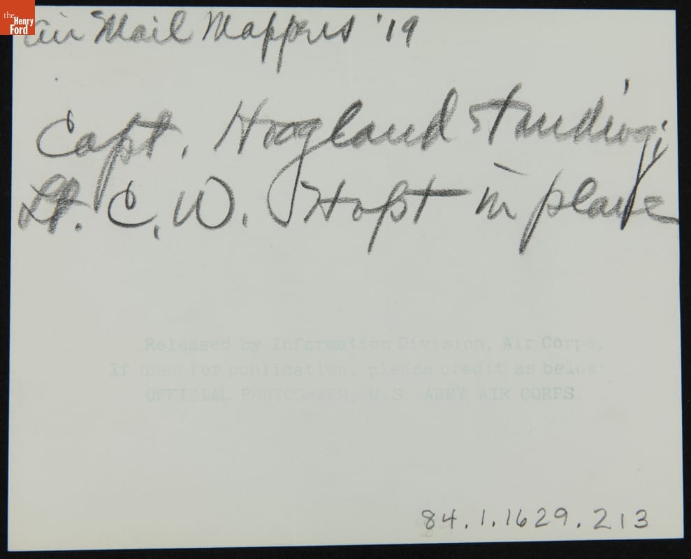 Air Mail Mappers 1919 / Capt. Highland standing / Lt. C.W. Hopt in plane