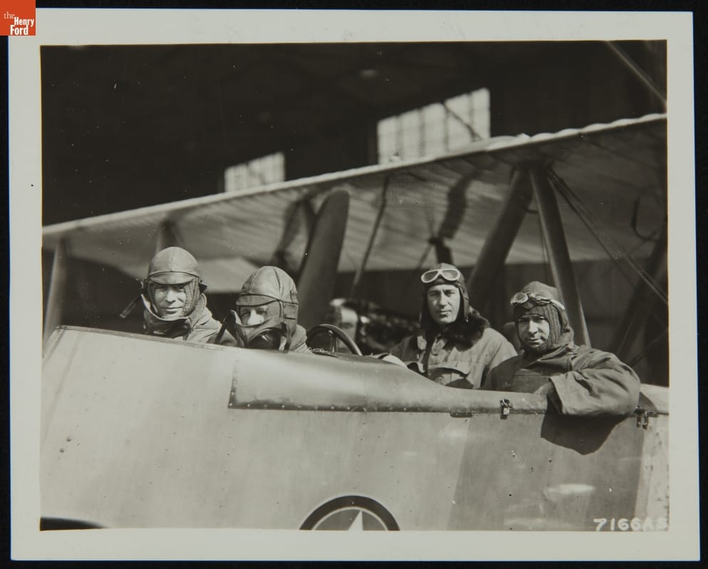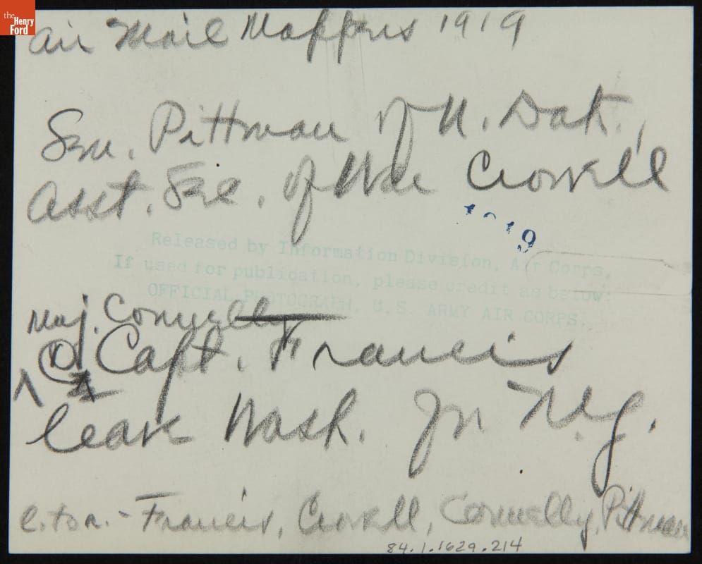 Air Mail Mappers 1919 / Sen. Pittman of N. Dak, Asst. Sec. of War Crowell / Maj. Connelly / Capt. Francis leave Wash. for NY. / l. to r. Francis, Crowell, Connelly, Pittman
