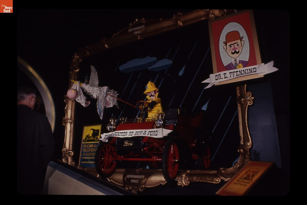 Ford Motor Company brought in Walt Disney to design exhibits for its pavilion at the 1964-1965 New York World's Fair. Visitors waited in long lines for this "unique and memorable entertainment adventure." Once inside, fairgoers encountered displays focusing on Ford's history, global influence, and current products. The highlight was the Magic Skyway ride, in which guests sat in Ford convertibles through a Disney-designed show.