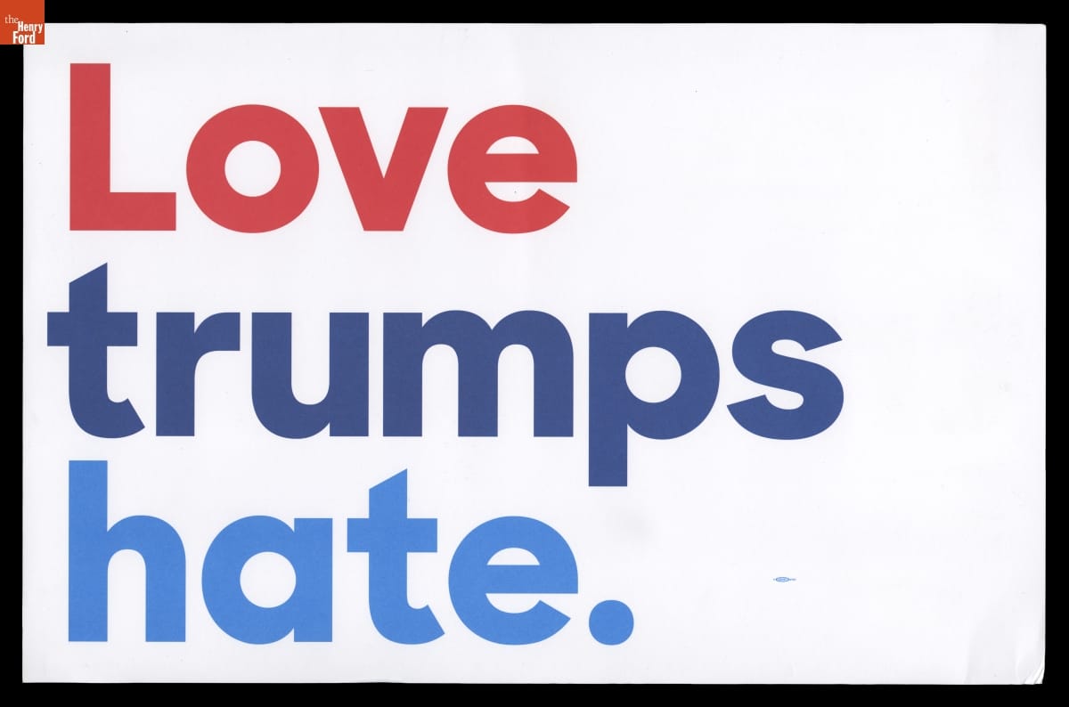 Hillary Clinton Campaign Sign, 2016, "Love Trumps Hate"
