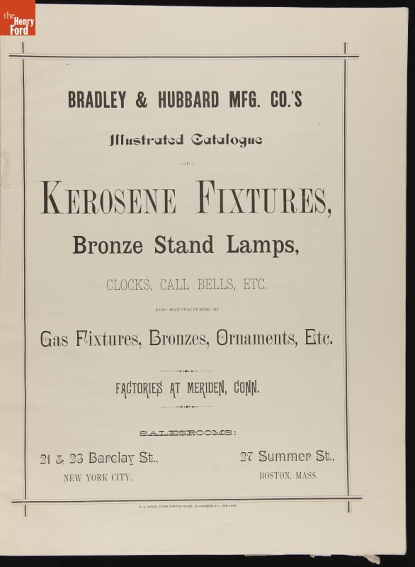 "Illustrated Catalogue of Kerosene Fixtures, Bronze Stand Lamps, Clocks, Call Bells, etc.," 1883-1884