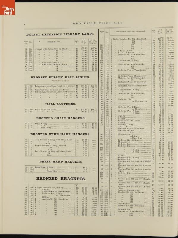 THF284383 / "Illustrated Catalogue of Kerosene Fixtures, Bronze Stand Lamps, Clocks, Call Bells, etc.," 1883-1884 / Wholesale Price List page4