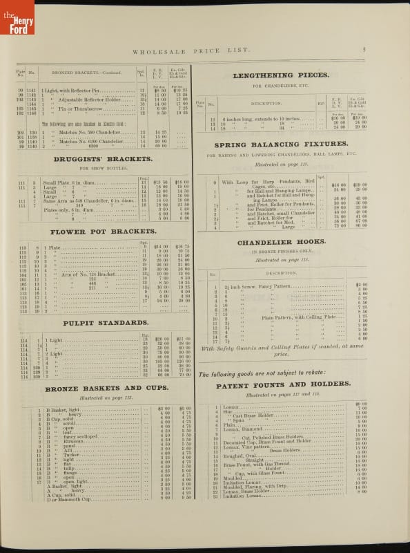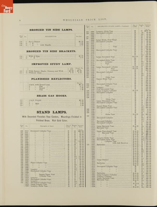 THF284385 / "Illustrated Catalogue of Kerosene Fixtures, Bronze Stand Lamps, Clocks, Call Bells, etc.," 1883-1884 / Wholesale Price List page6