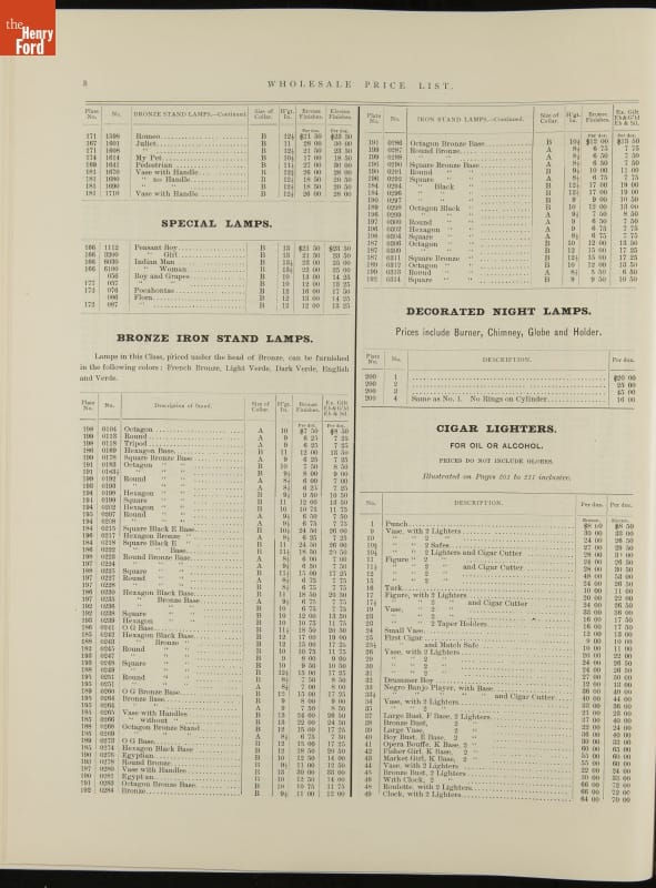 THF284387 / "Illustrated Catalogue of Kerosene Fixtures, Bronze Stand Lamps, Clocks, Call Bells, etc.," 1883-1884 / Wholesale Price List page8