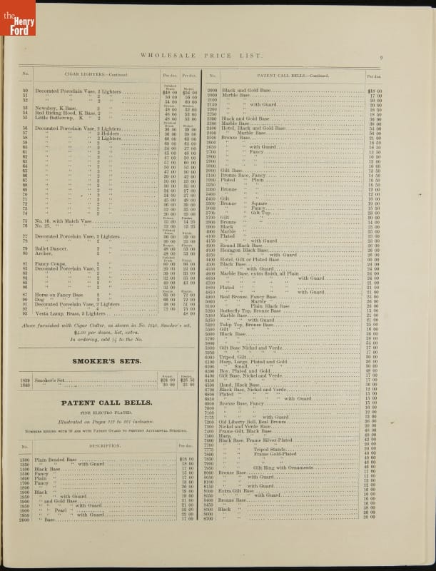 THF284388 / "Illustrated Catalogue of Kerosene Fixtures, Bronze Stand Lamps, Clocks, Call Bells, etc.," 1883-1884 / Wholesale Price List page9