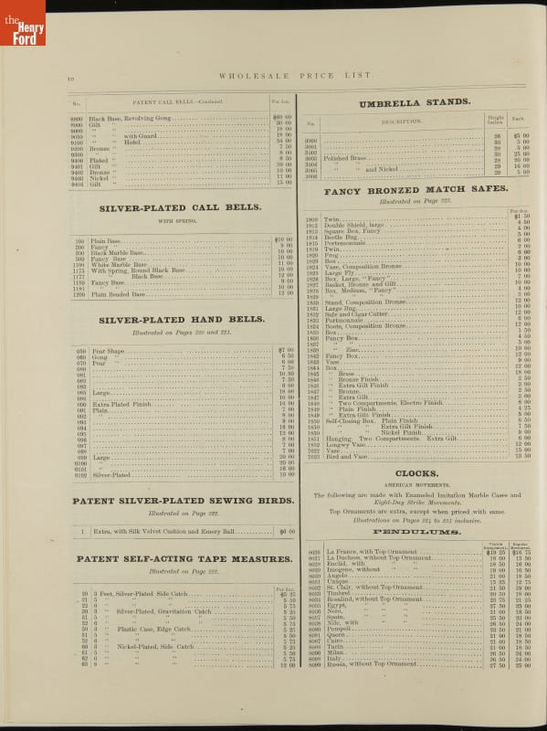 THF284389 / "Illustrated Catalogue of Kerosene Fixtures, Bronze Stand Lamps, Clocks, Call Bells, etc.," 1883-1884 / Wholesale Price List page10
