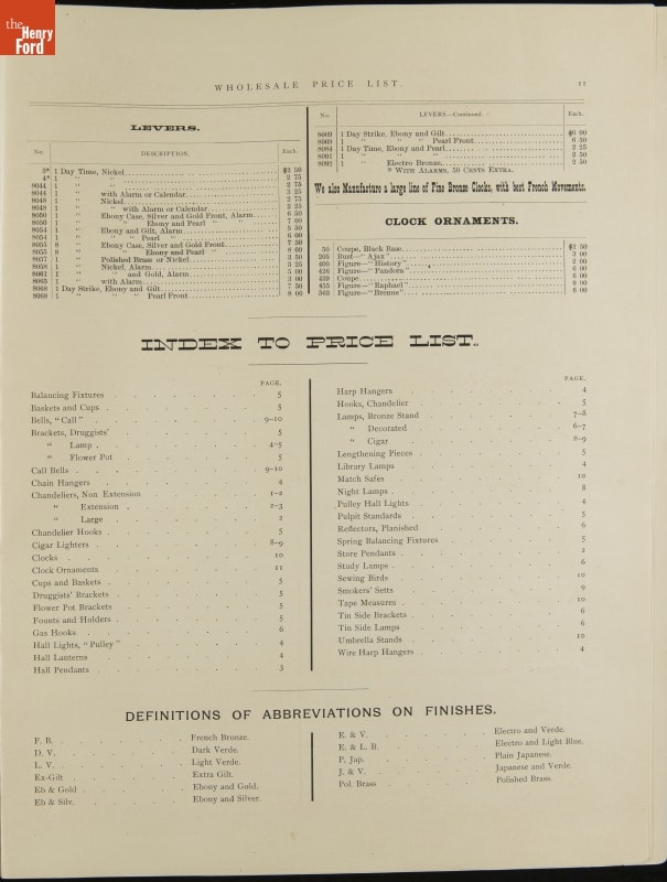 THF284381 / "Illustrated Catalogue of Kerosene Fixtures, Bronze Stand Lamps, Clocks, Call Bells, etc.," 1883-1884 / Wholesale Price List page2