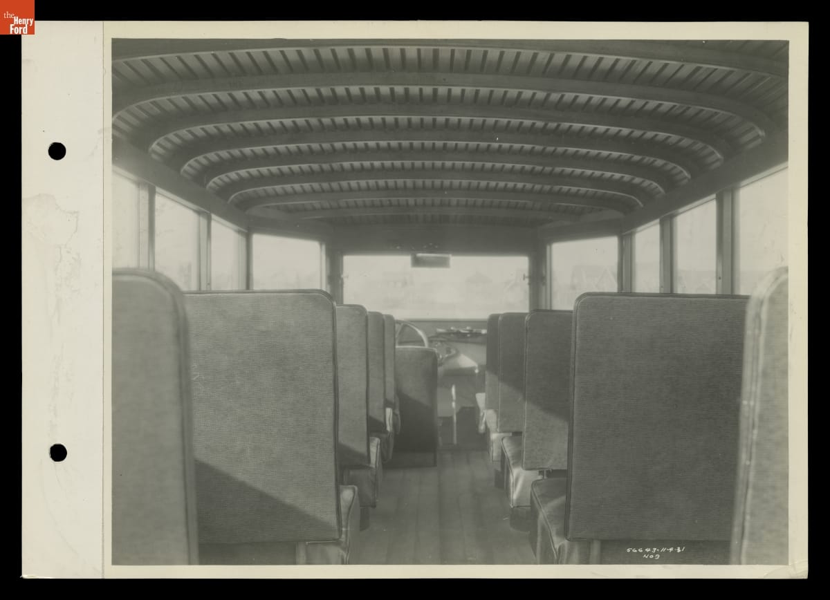 Interior of 1932 Ford School Bus Used in the Fordson School District, Dearborn, Michigan, November 1931