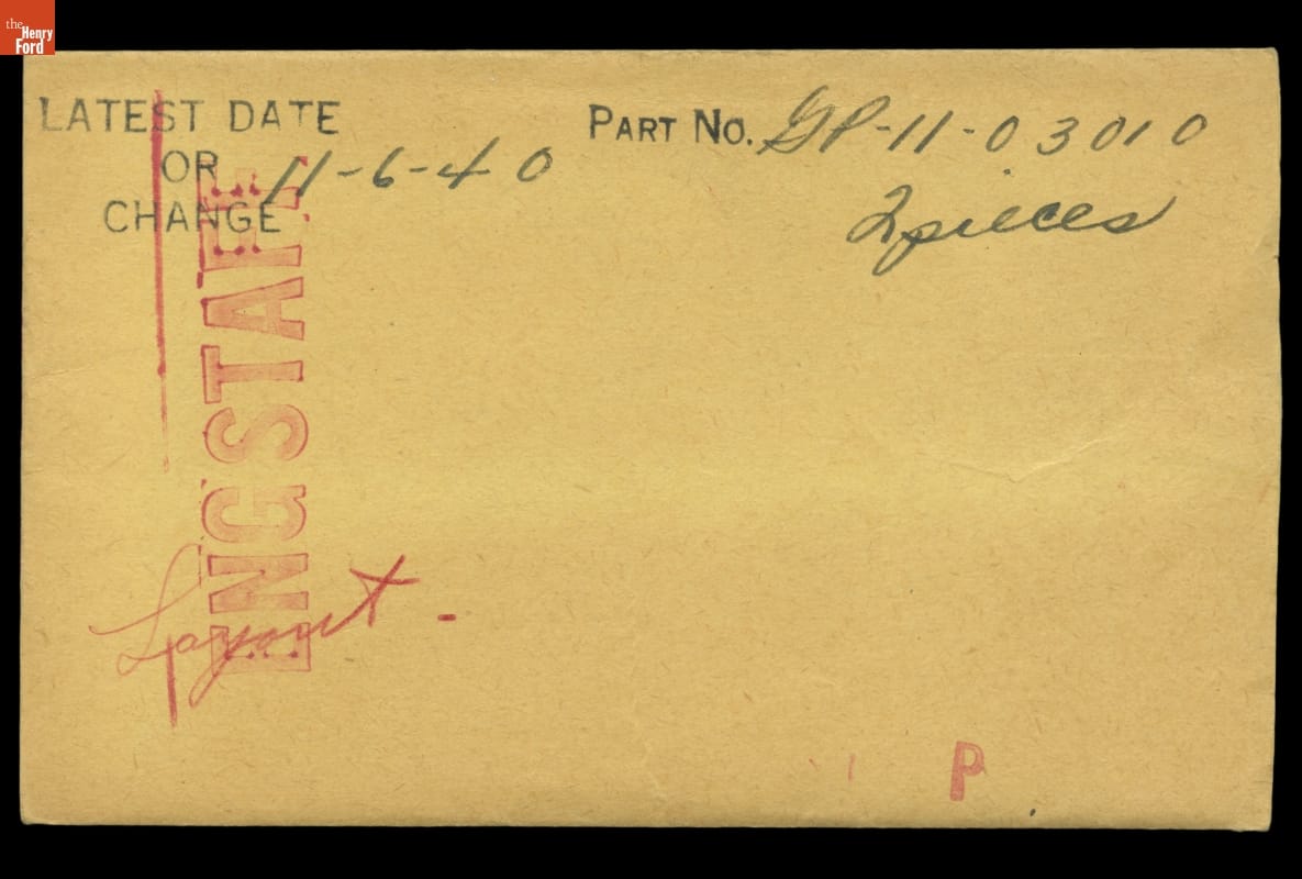 The Ford Motor Company created over a million parts drawings from 1903 to 1957. Many of these drawings specify engineering requirements for the components of Ford-made vehicles--including automobiles, trucks, tractors, military vehicles and Tri-motor airplanes. Others document assembly components, stages of casting and forging, or experimental designs. Beginning in the 1940s, Ford transferred the drawings to microfilm.