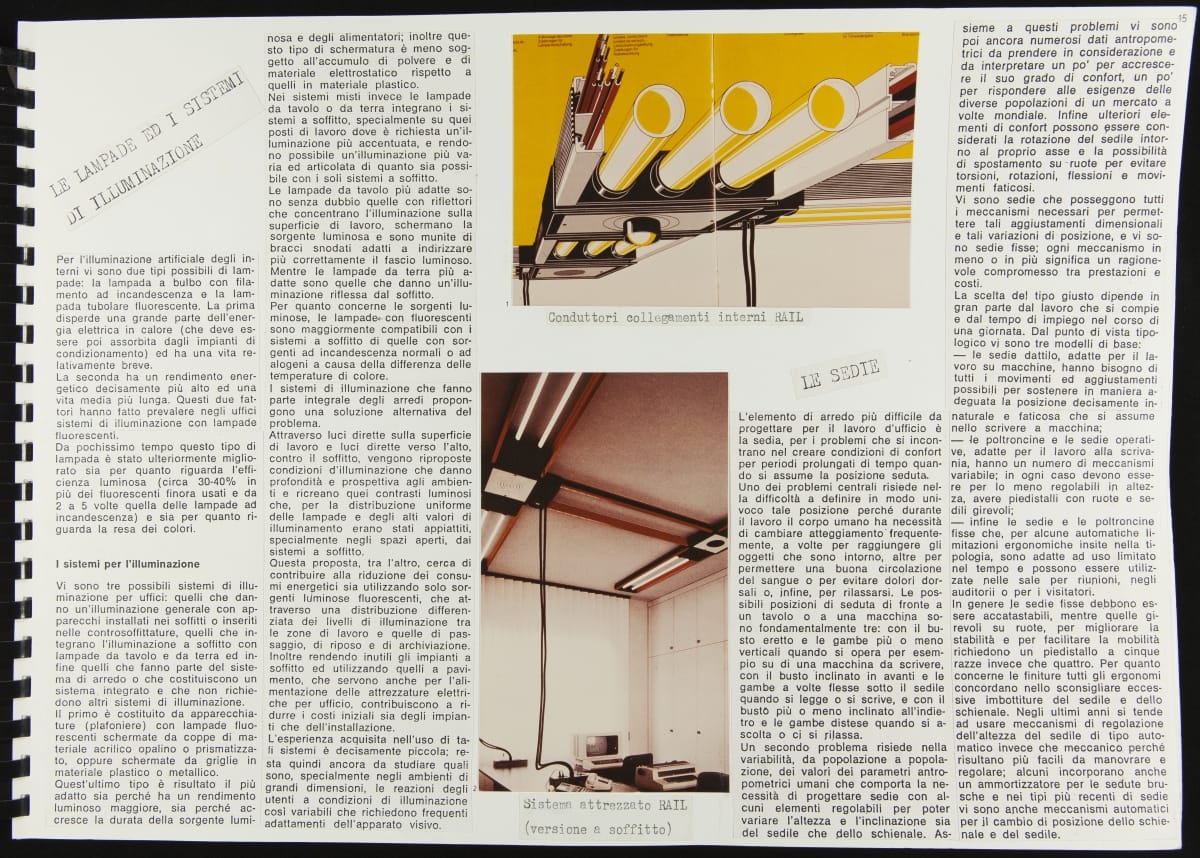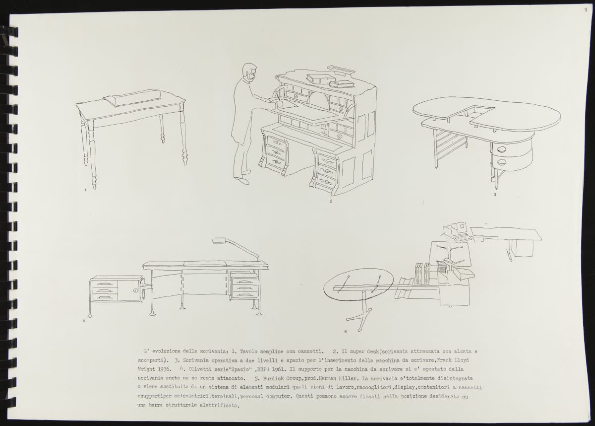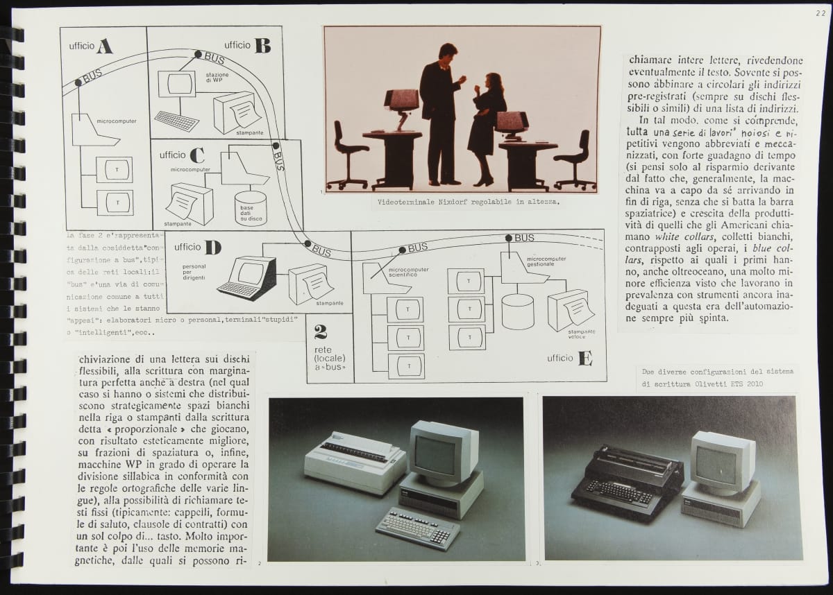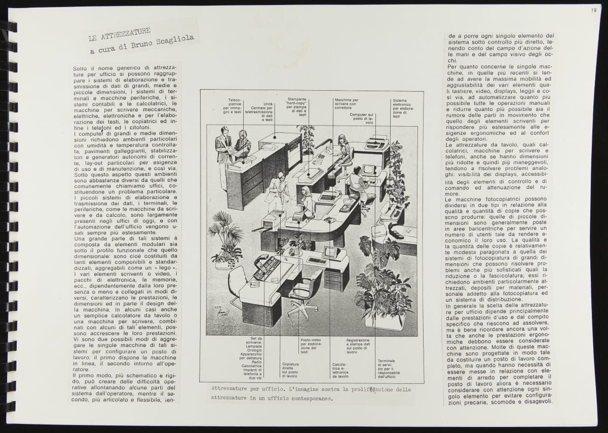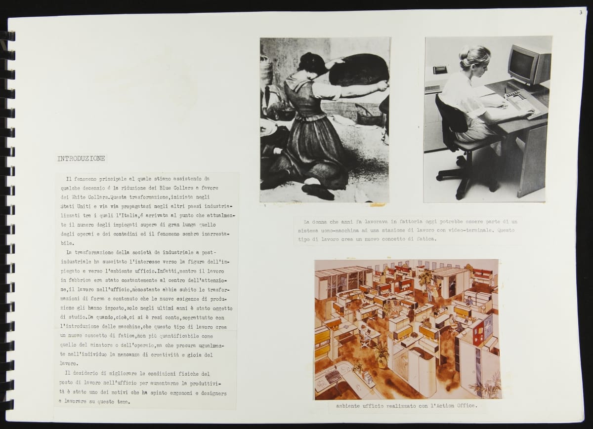 The Walking Office Wearable Computer is a prototype model created by the collaborative design group Salotto Dinamico. This illustrated thesis along with conceptual drawings were submitted by Vincenzo Iavicoli to fulfill his Industrial Design degree. They contain research that informed the prototype: the history of office furniture, office technology, and intangible aspects such as the psychology of work environments.
