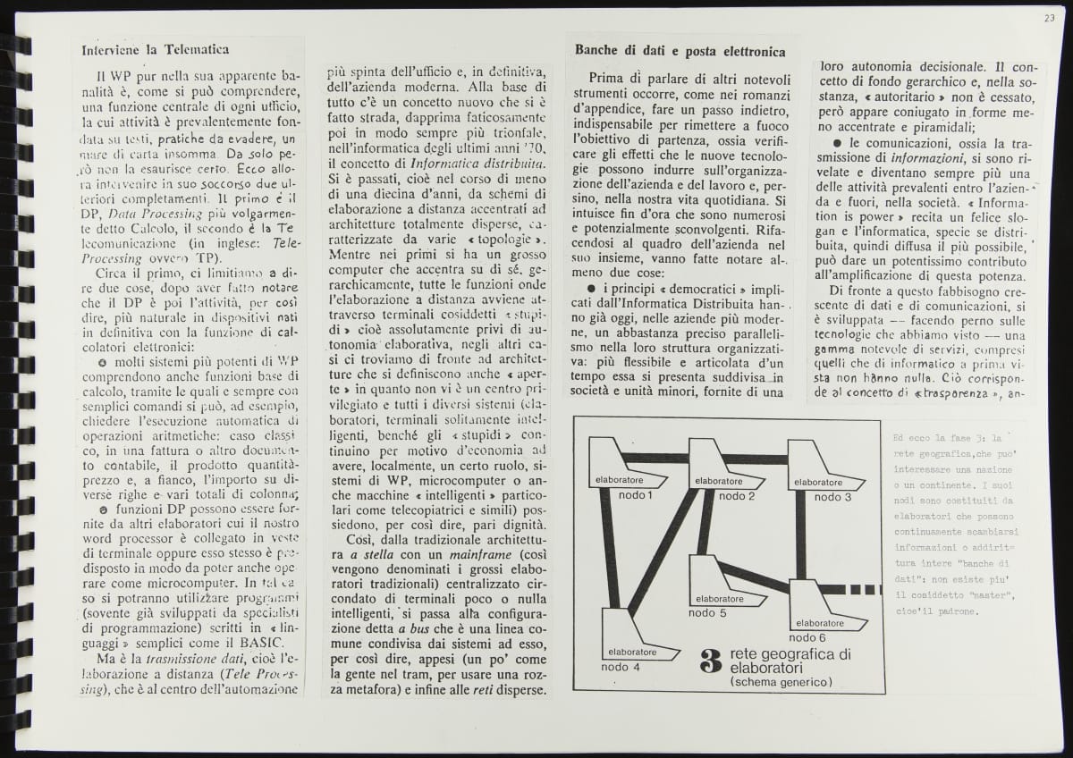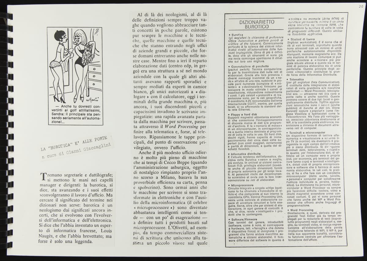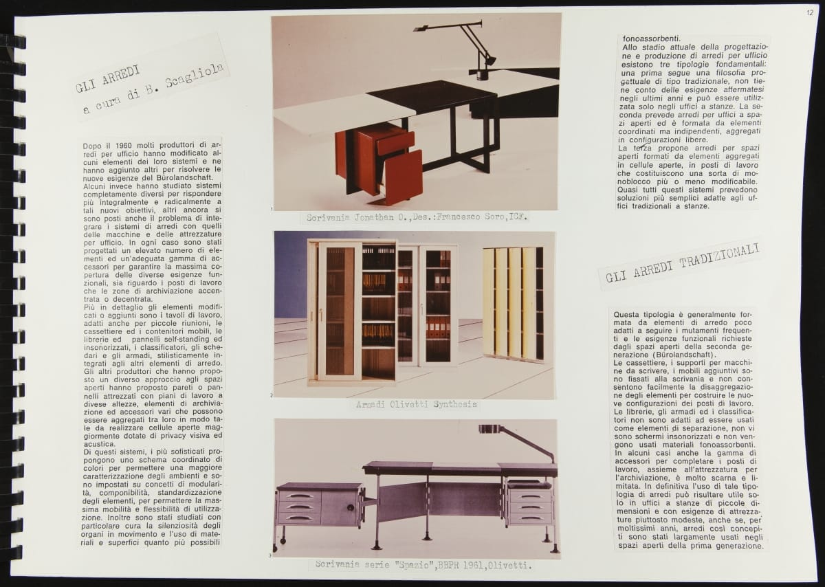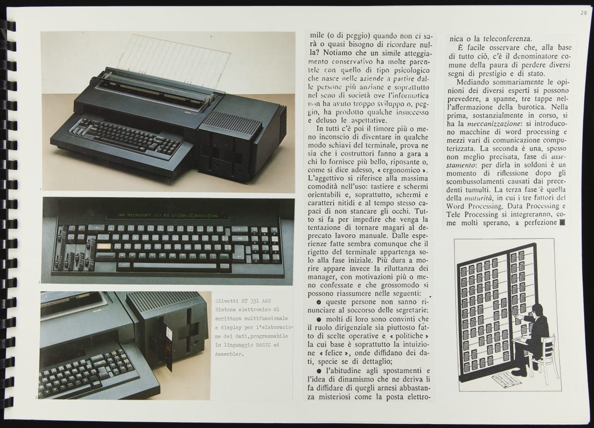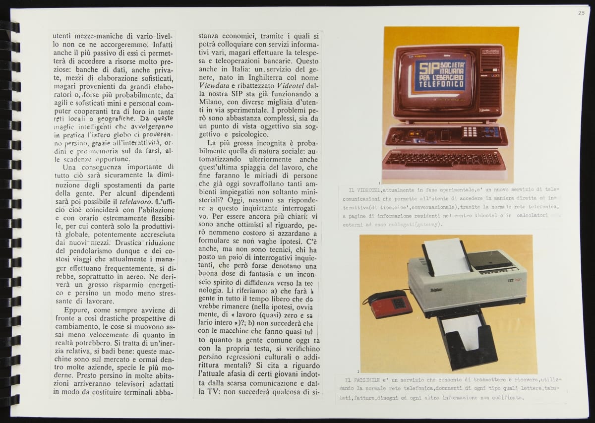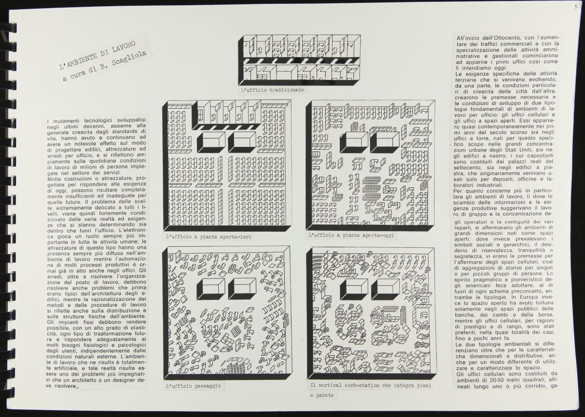 The Walking Office Wearable Computer is a prototype model created by the collaborative design group Salotto Dinamico. This illustrated thesis along with conceptual drawings were submitted by Vincenzo Iavicoli to fulfill his Industrial Design degree. They contain research that informed the prototype: the history of office furniture, office technology, and intangible aspects such as the psychology of work environments.
