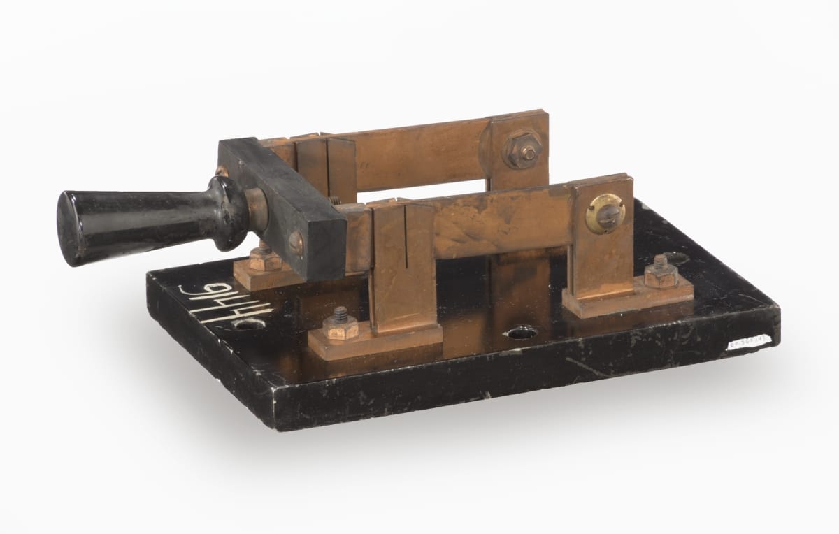 Switches open or close an electrical circuit to turn things off or on. In the late 1800s and early 1900s, knife switches were commonly found in engine or generating rooms, connected to factory motors, or mounted on a building's power and lighting switchboard. Operators pushed the hinged, metal blades into the switch's jaws to send electricity to where it was needed.