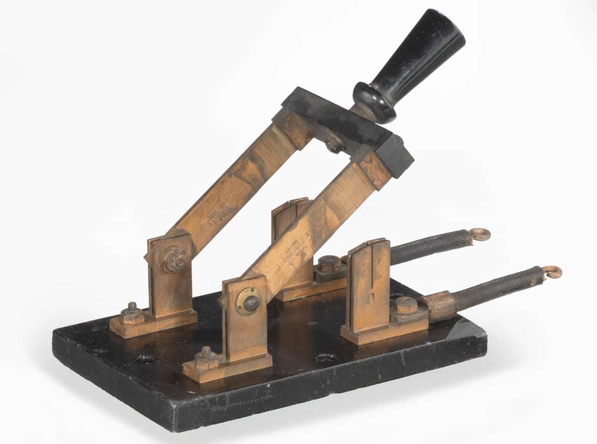 Switches open or close an electrical circuit to turn things off or on. In the late 1800s and early 1900s, knife switches were commonly found in engine or generating rooms, connected to factory motors, or mounted on a building's power and lighting switchboard. Operators pushed the hinged, metal blades into the switch's jaws to send electricity to where it was needed.