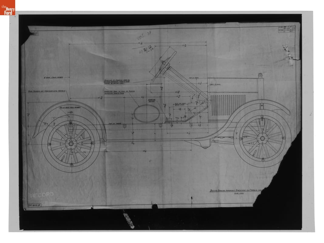 The Ford Motor Company created over a million parts drawings from 1903 to 1957. Many of these drawings specify engineering requirements for the components of Ford-made vehicles--including automobiles, trucks, tractors, military vehicles and Tri-motor airplanes. Others document assembly components, stages of casting and forging, or experimental designs. Beginning in the 1940s, Ford transferred the drawings to microfilm.