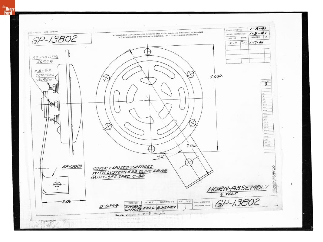 Drawing, "Horn - Assembly," Ford GP, January 17, 1942