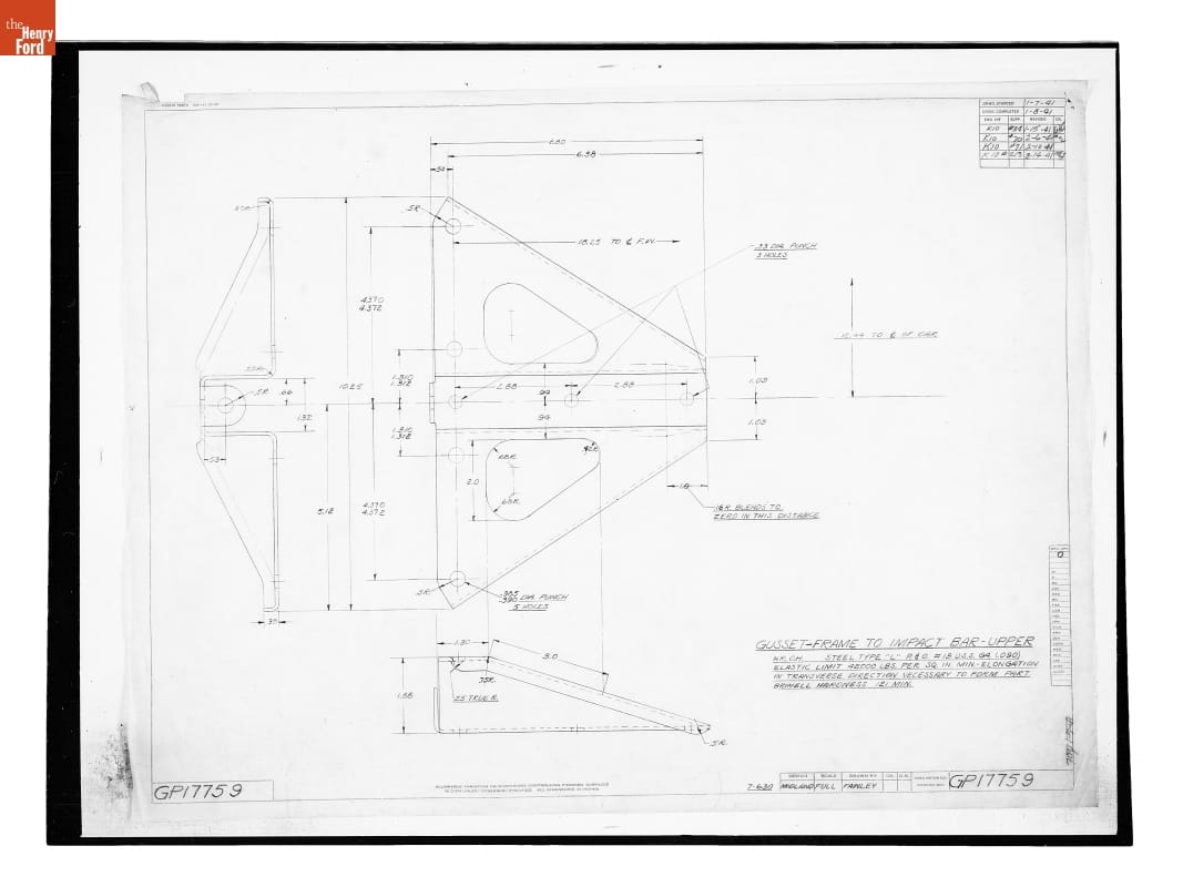 Drawing, "Gusset - Frame to Impact Bar - Upper," Ford GP, August 14, 1941