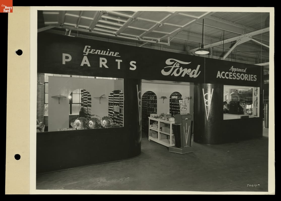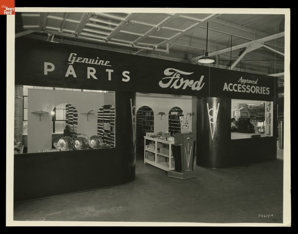 Ford Motor Company inaugurated a system of competing dealership franchises in 1914. Dealers sold Ford vehicles, offered repair services, and stocked spare parts and automobile accessories. Dealership parts and service departments lured customers with displays and advertisements. The department also served as a reminder to potential car buyers that the dealership provided extra services after the sale.