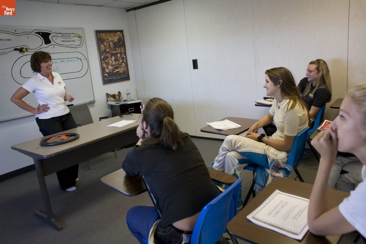 Racing legend Lyn St. James established her Complete Driver Academy in 1994. The Academy provided a comprehensive education and training program for talented women race car drivers who aspired to attain the highest levels in motorsports. In 2008 staff from The Henry Ford traveled to Phoenix, Arizona, to interview St. James and documented the Academy's instructors, students, classrooms, and hands-on sessions.