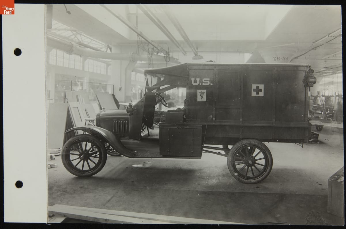 When the United States entered World War I, Ford Motor Company personnel collaborated with the U.S. Surgeon General's Office, and with drivers who had served on the frontlines in France, to design a Model T-based ambulance suited to battlefield conditions. Ford built 5,745 ambulances for the Allied Powers during the war, and another 107 for the Red Cross.