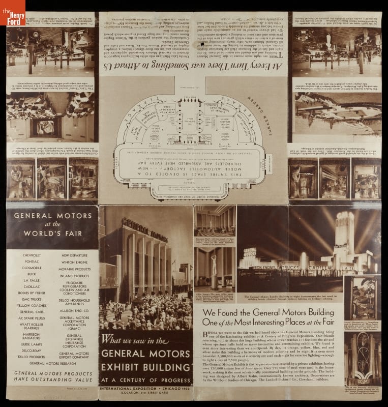 Chicago's 1933-34 Century of Progress Exposition used the theme of progress to buoy national optimism during the Depression's darkest years. Fairgoers who visited the General Motors building could return home with this brochure -- a memento of the automotive manufacturer's many mechanical exhibits and scientific demonstrations.