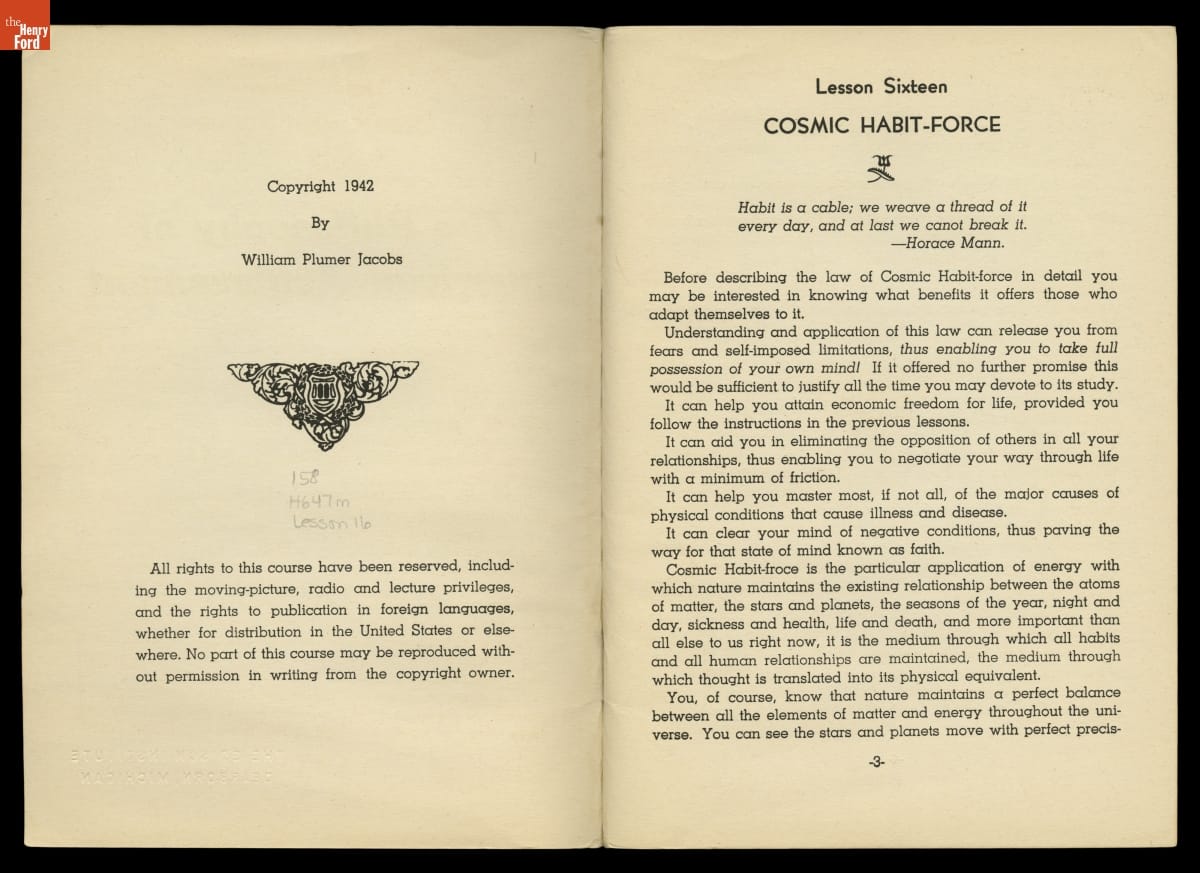 Mental Dynamite: the Philosophy of American Achievement, Lesson Sixteen, Cosmic Habit-Force, 1942