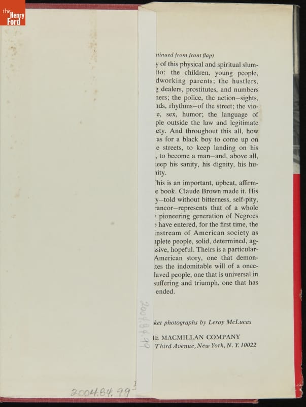 Written by Claude Brown. Published by Macmillan Company, New York, New York.