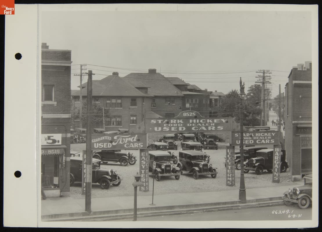 Used Car Lots at Stark Hickey Ford Dealership, Detroit, Michigan, 1931