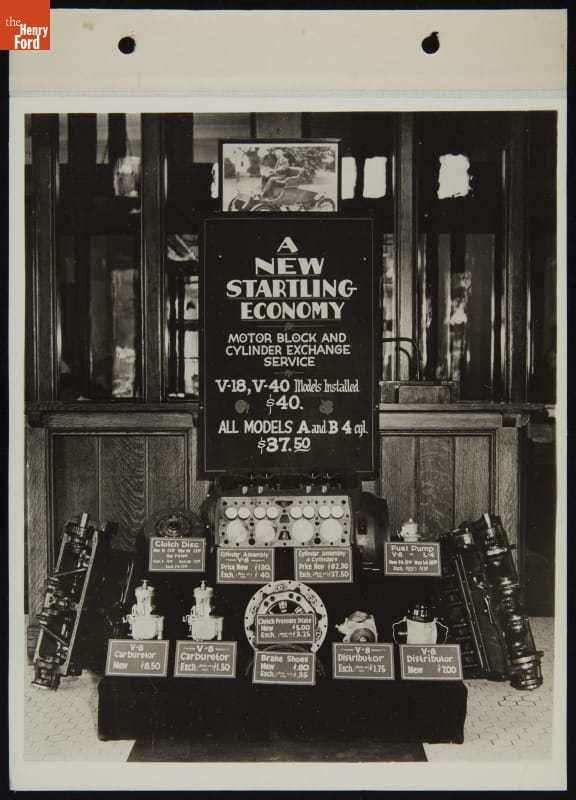 Motor Block and Cylinder Exchange Service for Ford 4-Cylinder and V-8 Automobiles, 1933