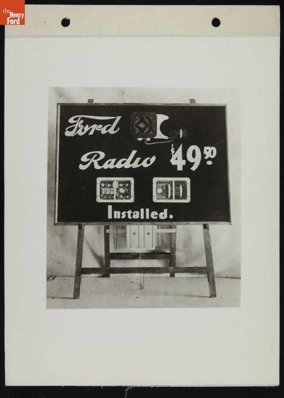 "Ford Radio $49.50 Installed" Display Board, May 3, 1933