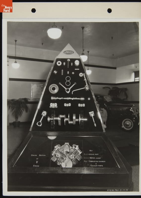 Display Pyramid with Ford V-8 Model 40 Parts, September 1933