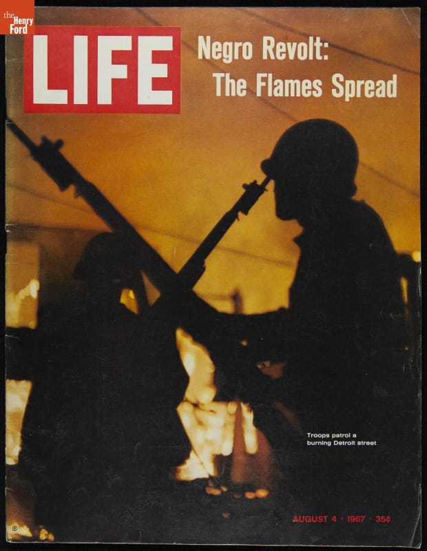 LIFE / Negro Revolt: / The Flames Spread / Troops patrol a / burning Detroit street / AUGUST 4 - 1967 - 35c