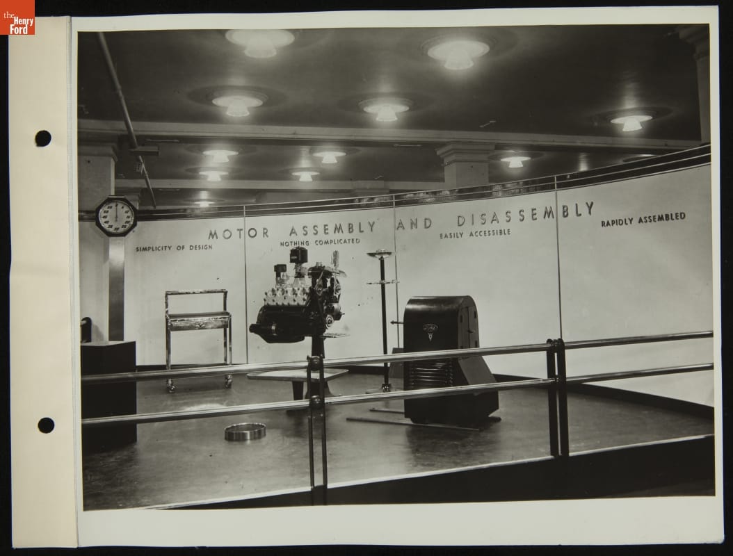 First staged in 1900, the New York Auto Show is considered the first major all-automobile show in the United States. It remains one of the world's largest and most important. Ford Motor Company mounted this display at the 1935 show. Highlights included a demonstration of how quickly Ford's V-8 engine could be assembled and disassembled.