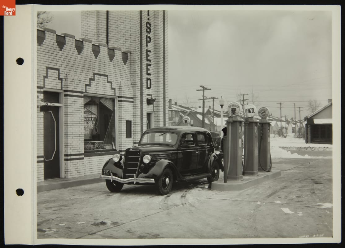Ford V-8 Car at Service Station, February 1935