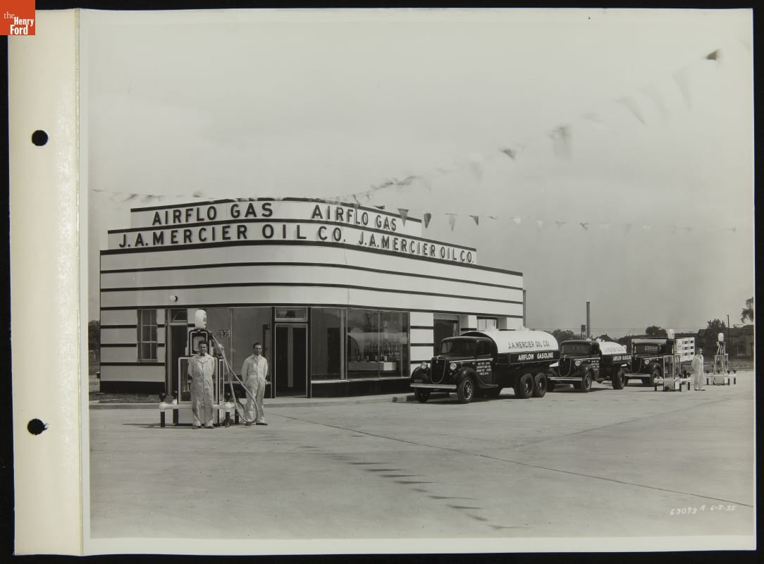 Ford V-8 Tank and Stake Trucks at J.A. Mercier Oil Company, June 1935