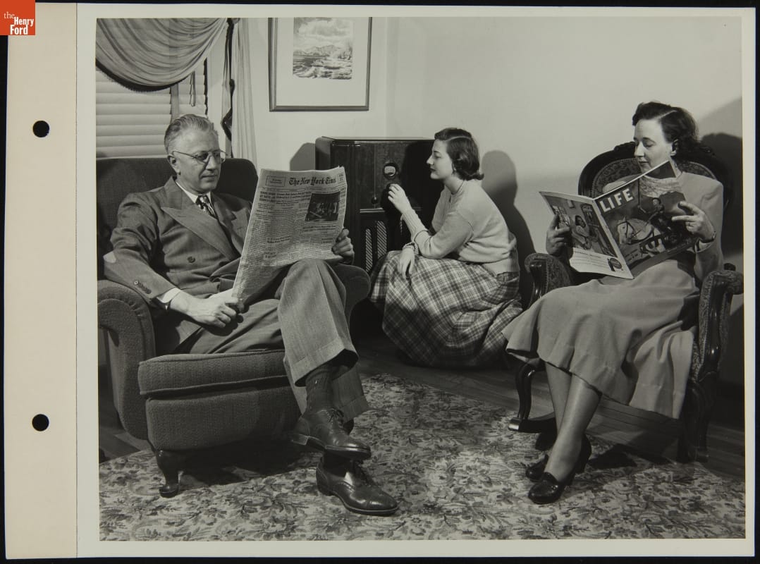 Allan McGrew and Family Reading and Listening to Radio, 1948