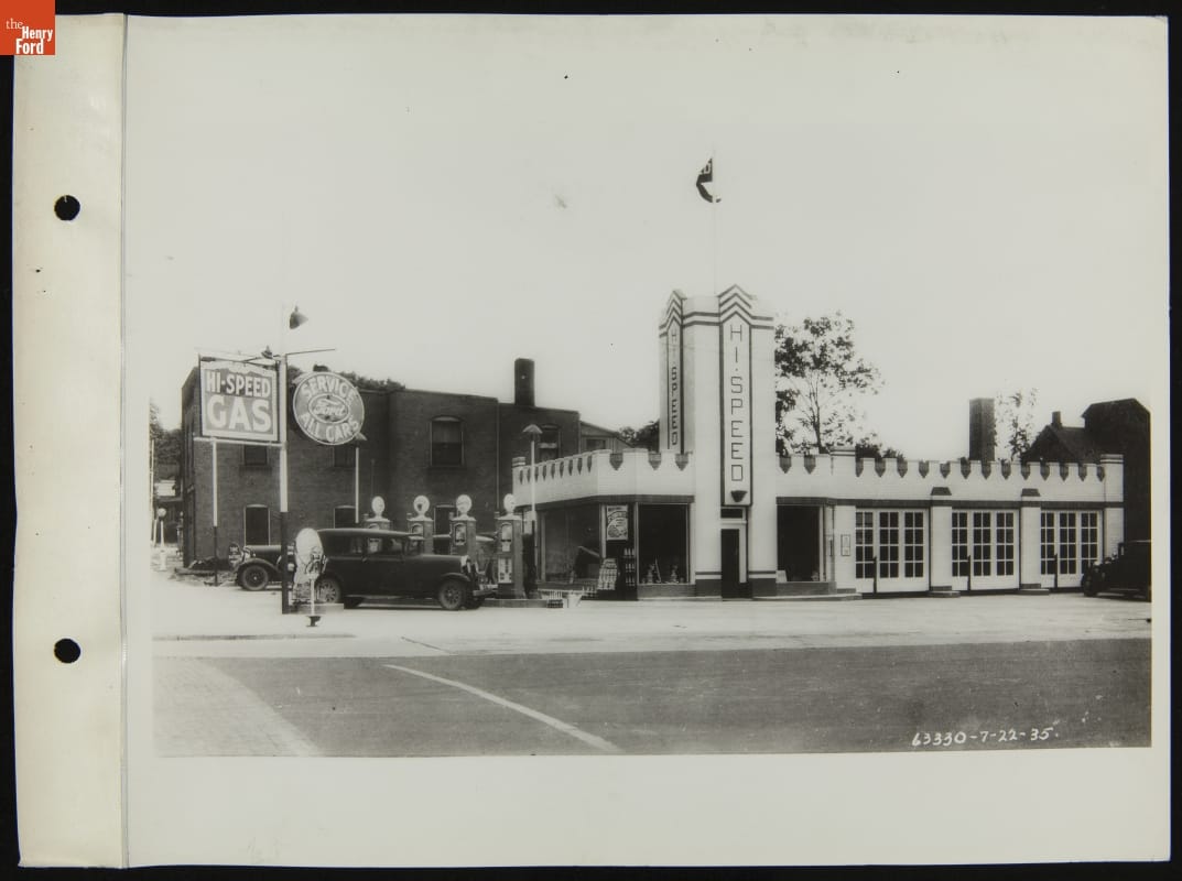 Super Service Station at Corner of Michigan Avenue am Superior Street, Albion, Michigan, July 1935