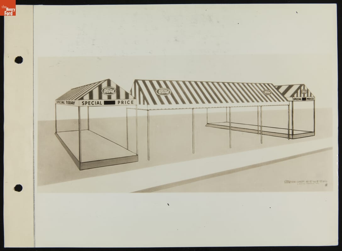 Automobile dealerships used every trick in the book to draw attention to their products, especially during the challenging years of the Great Depression. Bold signs, fluttering banners and streamers, and brightly colored tents all helped showcase available cars and attract customers into showrooms.
