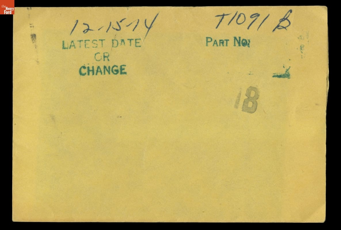 The Ford Motor Company created over a million parts drawings from 1903 to 1957. Many of these drawings specify engineering requirements for the components of Ford-made vehicles--including automobiles, trucks, tractors, military vehicles and Tri-motor airplanes. Others document assembly components, stages of casting and forging, or experimental designs. Beginning in the 1940s, Ford transferred the drawings to microfilm.