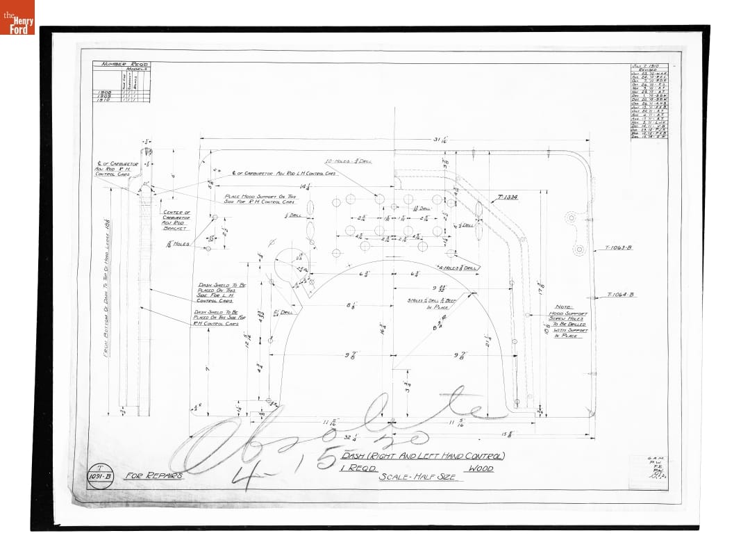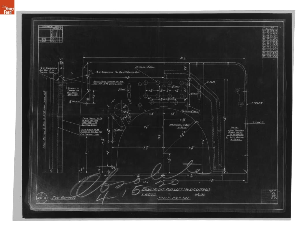 Drawing, "Dash (Right and Left Hand Control)," Ford Model T, December 15, 1914