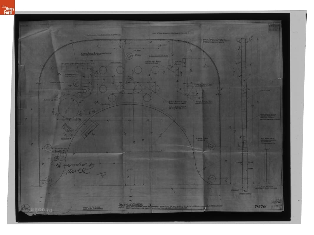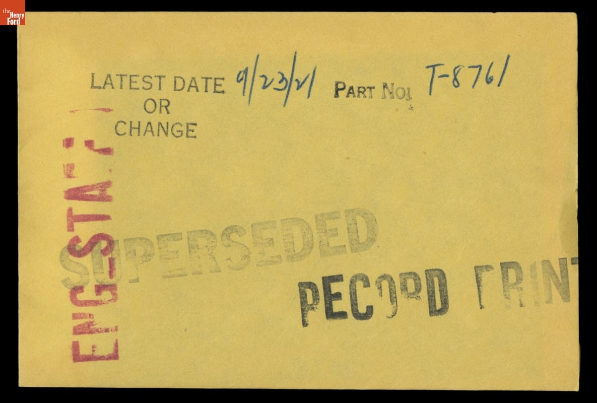 The Ford Motor Company created over a million parts drawings from 1903 to 1957. Many of these drawings specify engineering requirements for the components of Ford-made vehicles--including automobiles, trucks, tractors, military vehicles and Tri-motor airplanes. Others document assembly components, stages of casting and forging, or experimental designs. Beginning in the 1940s, Ford transferred the drawings to microfilm.