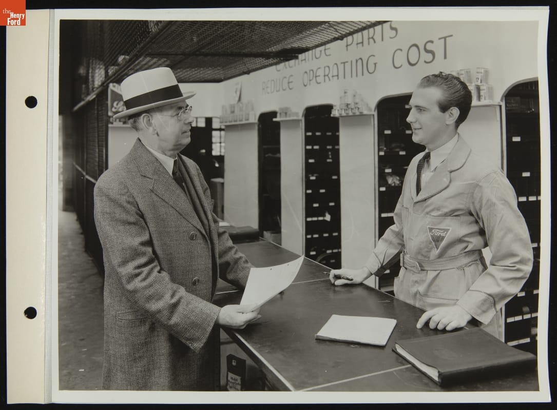 Customer Receiving Bill at Ford Dealership Parts Counter, August 1936
