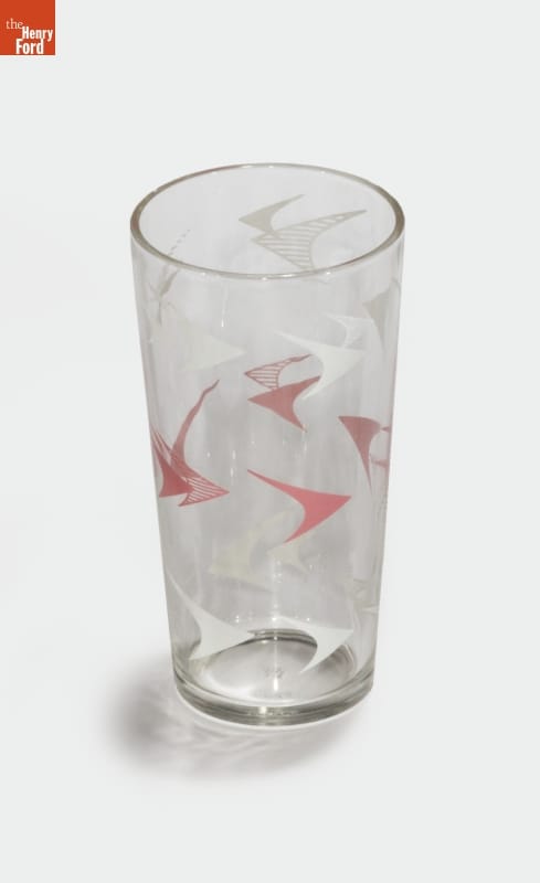 From the late 1930s through the 1960s, glass manufacturers designed "hostess sets" for every taste and budget. Often presented as wedding or housewarming gifts, these sets became features of the popular cocktail and patio parties of the time. Tumblers embellished with stylized "boomerangs" -- a symbol of the 1950s modern aesthetic -- showed guests the up-to-date style of the mid-20th century hostess.