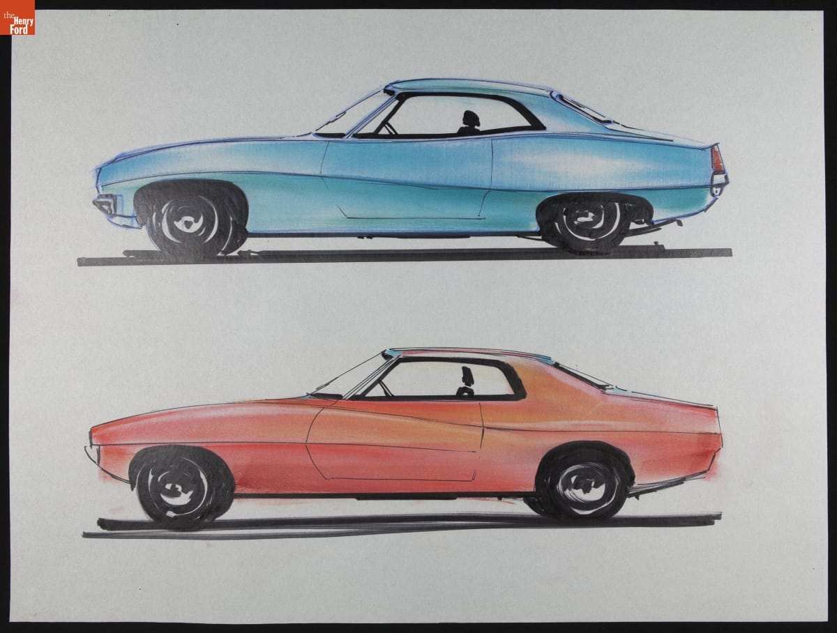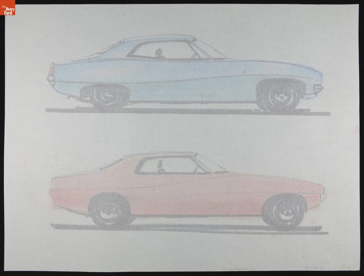 Rendering of Proposed 1970 Ford Torino Phase II Designs by William Shenk, 1968
