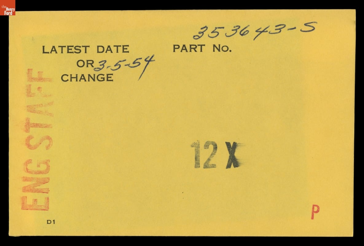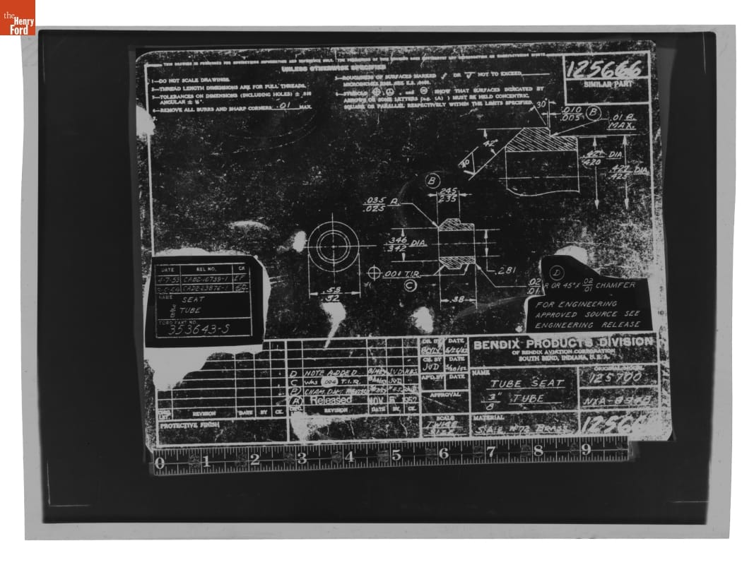 The Ford Motor Company created over a million parts drawings from 1903 to 1957. Many of these drawings specify engineering requirements for the components of Ford-made vehicles--including automobiles, trucks, tractors, military vehicles and Tri-motor airplanes. Others document assembly components, stages of casting and forging, or experimental designs. Beginning in the 1940s, Ford transferred the drawings to microfilm.
