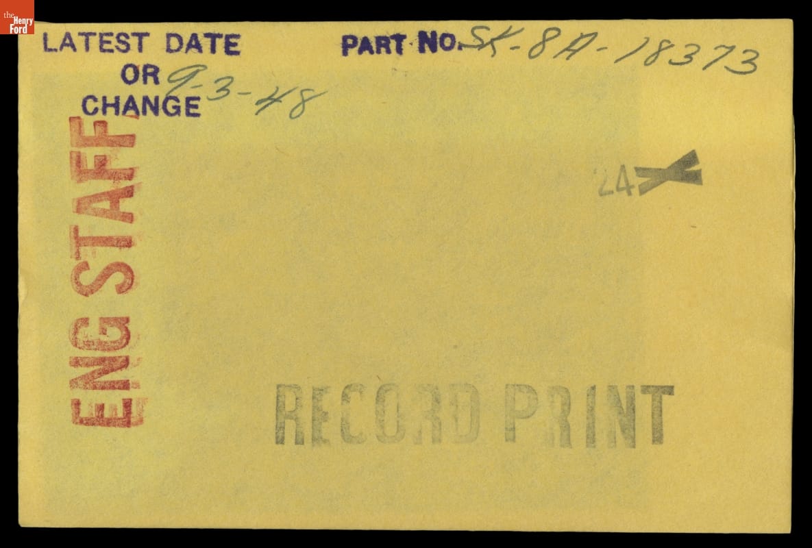 The Ford Motor Company created over a million parts drawings from 1903 to 1957. Many of these drawings specify engineering requirements for the components of Ford-made vehicles--including automobiles, trucks, tractors, military vehicles and Tri-motor airplanes. Others document assembly components, stages of casting and forging, or experimental designs. Beginning in the 1940s, Ford transferred the drawings to microfilm.