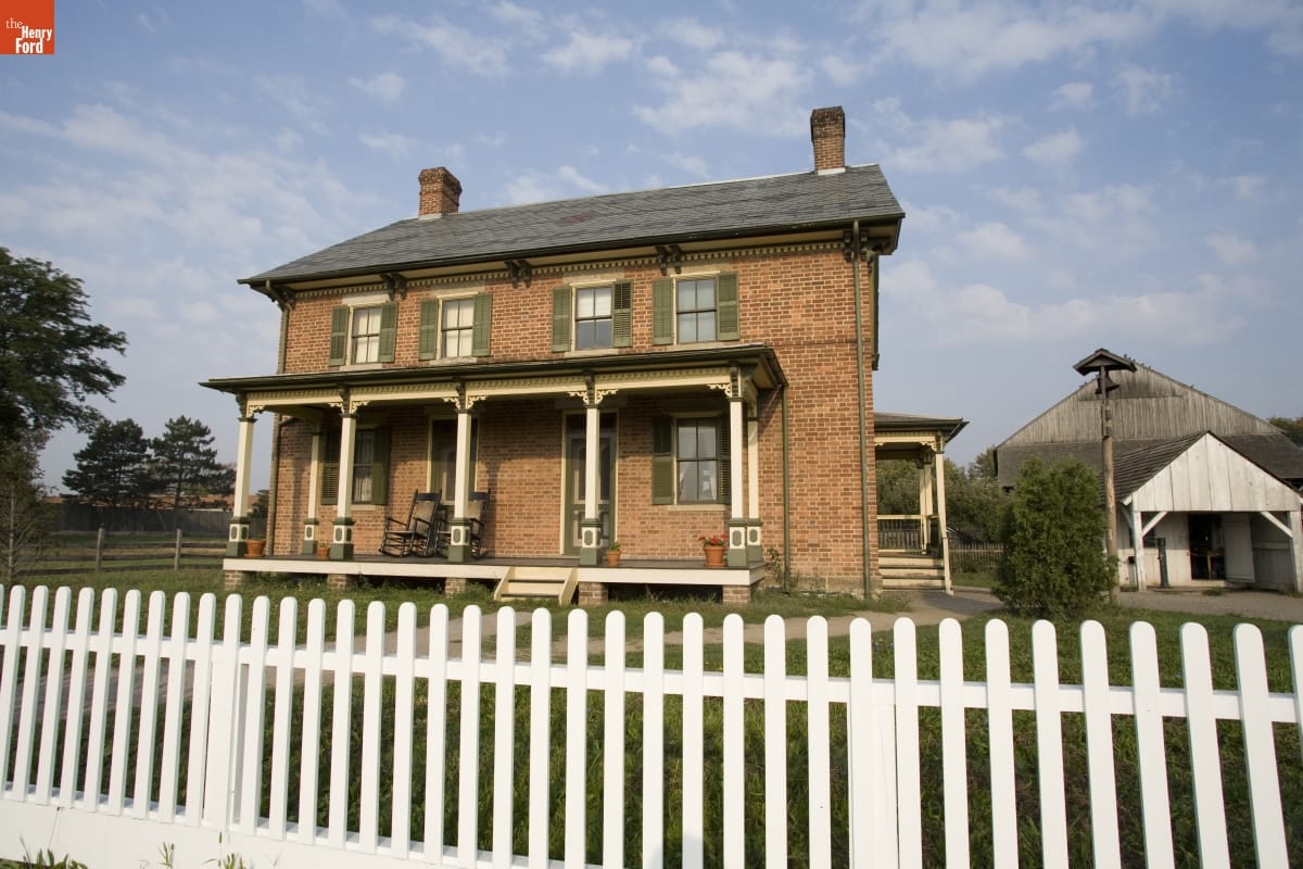 Benjamin and Catherine Firestone raised their three children in this farmhouse, including tire maker Harvey Firestone. Originally located near Columbiana, Ohio, the 1828 house was updated in 1882 to appear more stylish and up-to-date. The traditional Pennsylvania German layout of the Firestone's farmhouse was transformed, with a central foyer, separate dining room and kitchen, a sitting room, closets, wallpaper, and fancy new furniture.